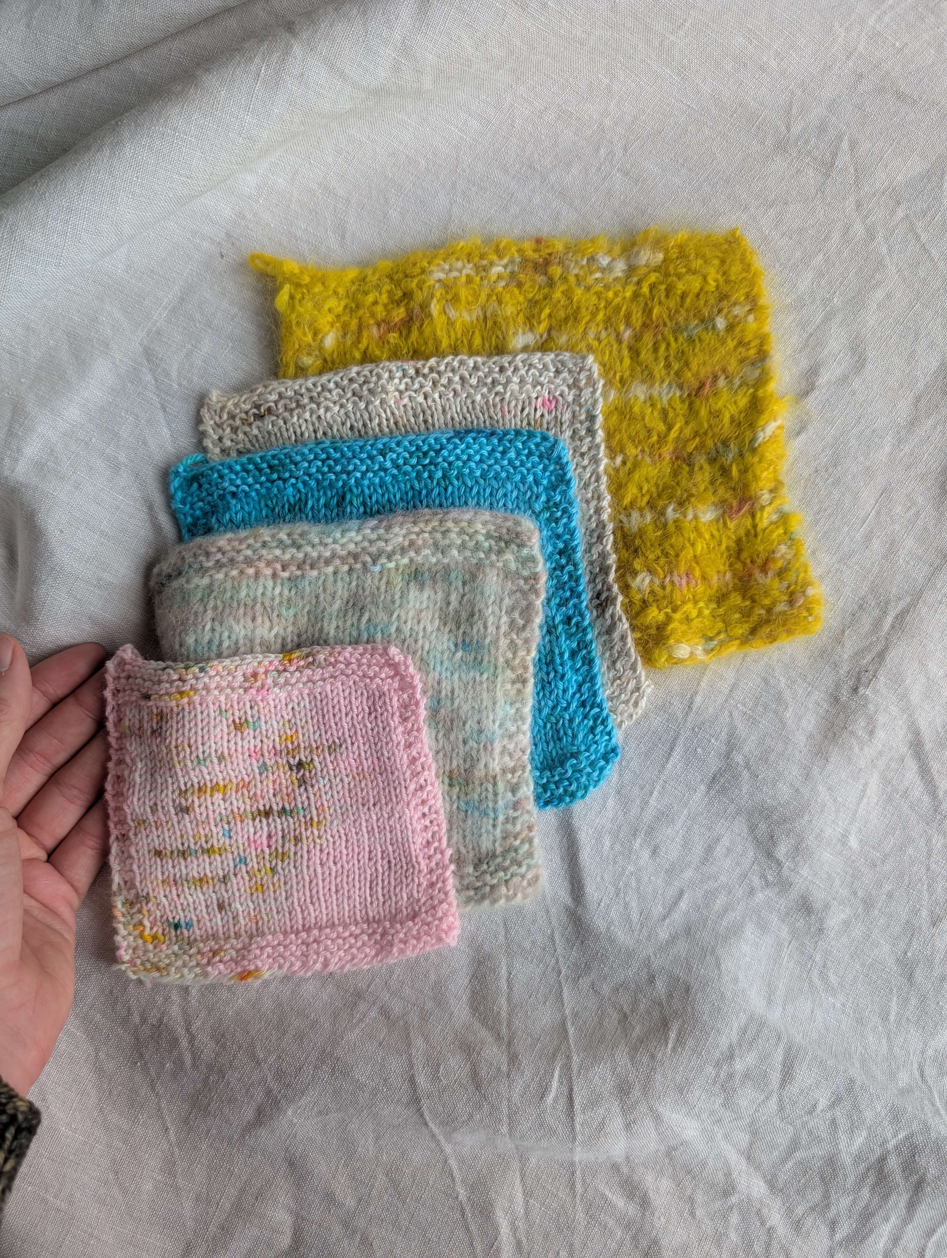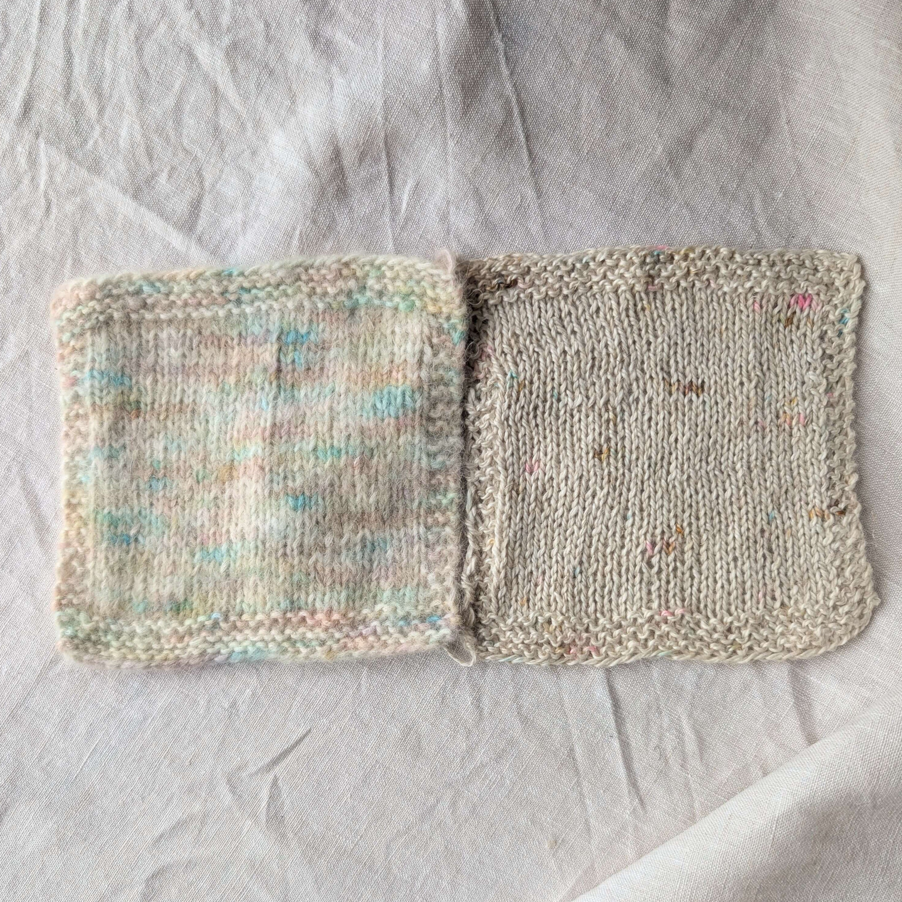 We recently did a side-by-side comparison using five of our most popular yarn bases, all knitted with the same needle size (3.75mm) and the same stitch count (30 stitches). And the results? They weren’t identical.