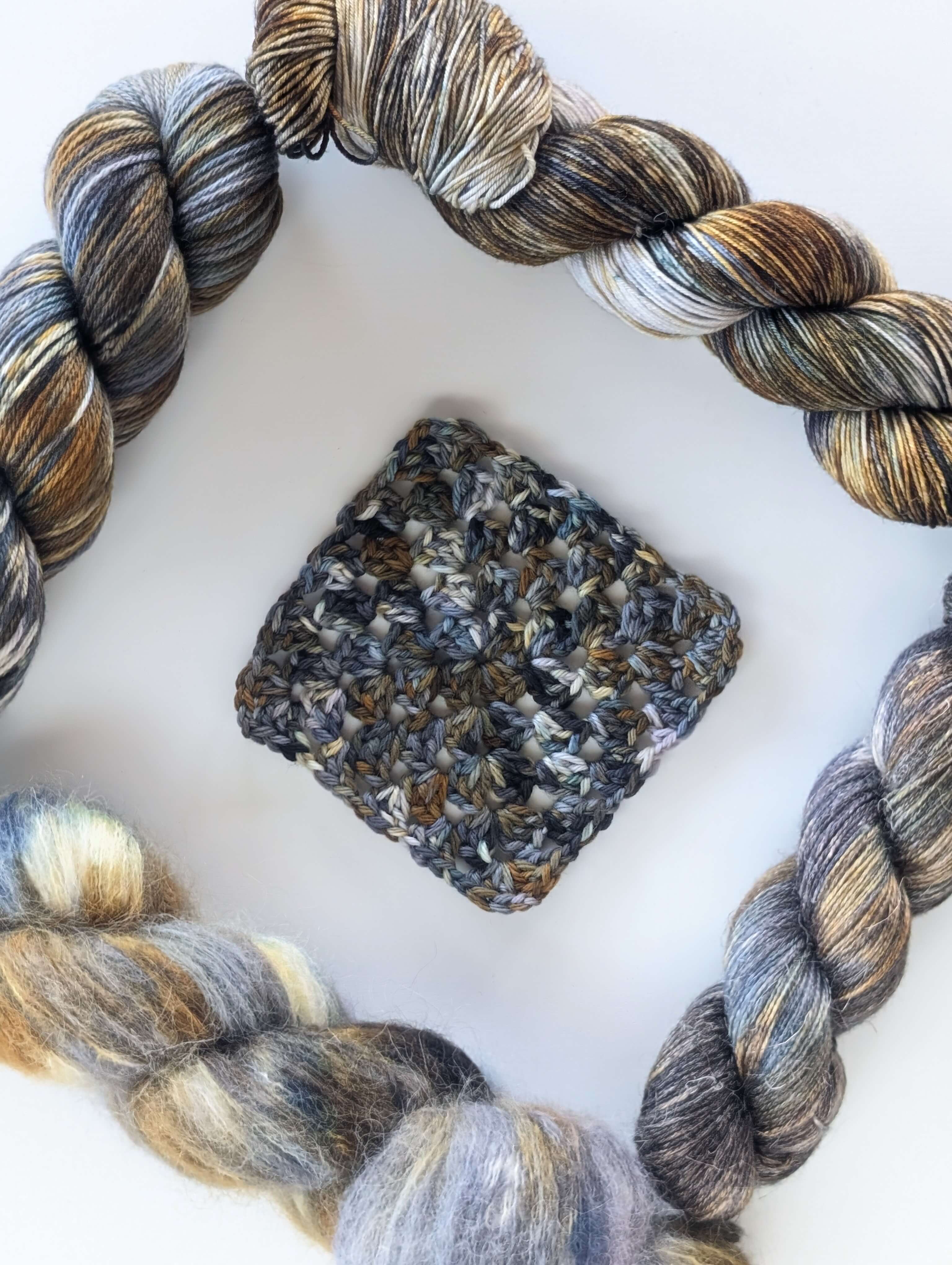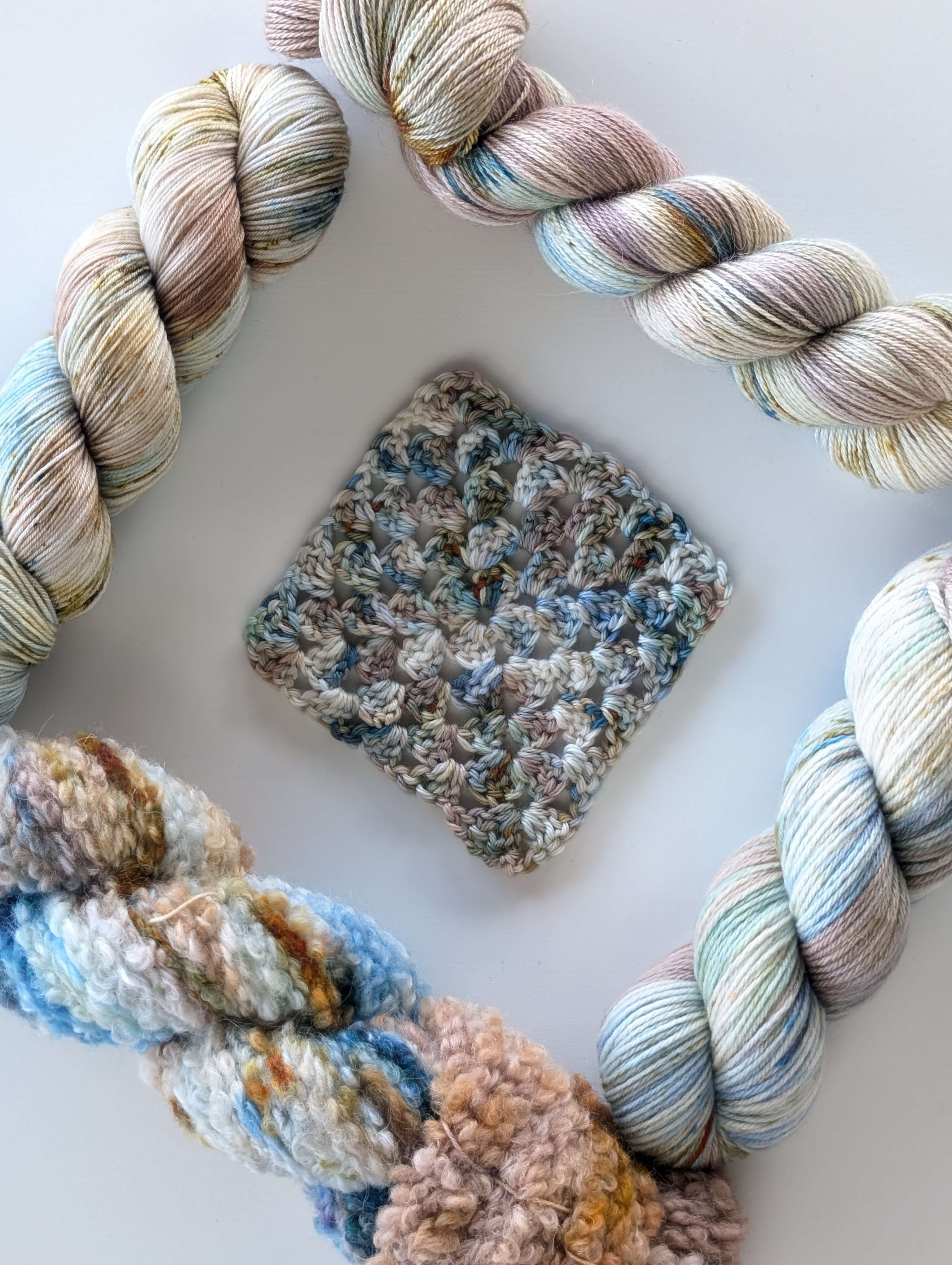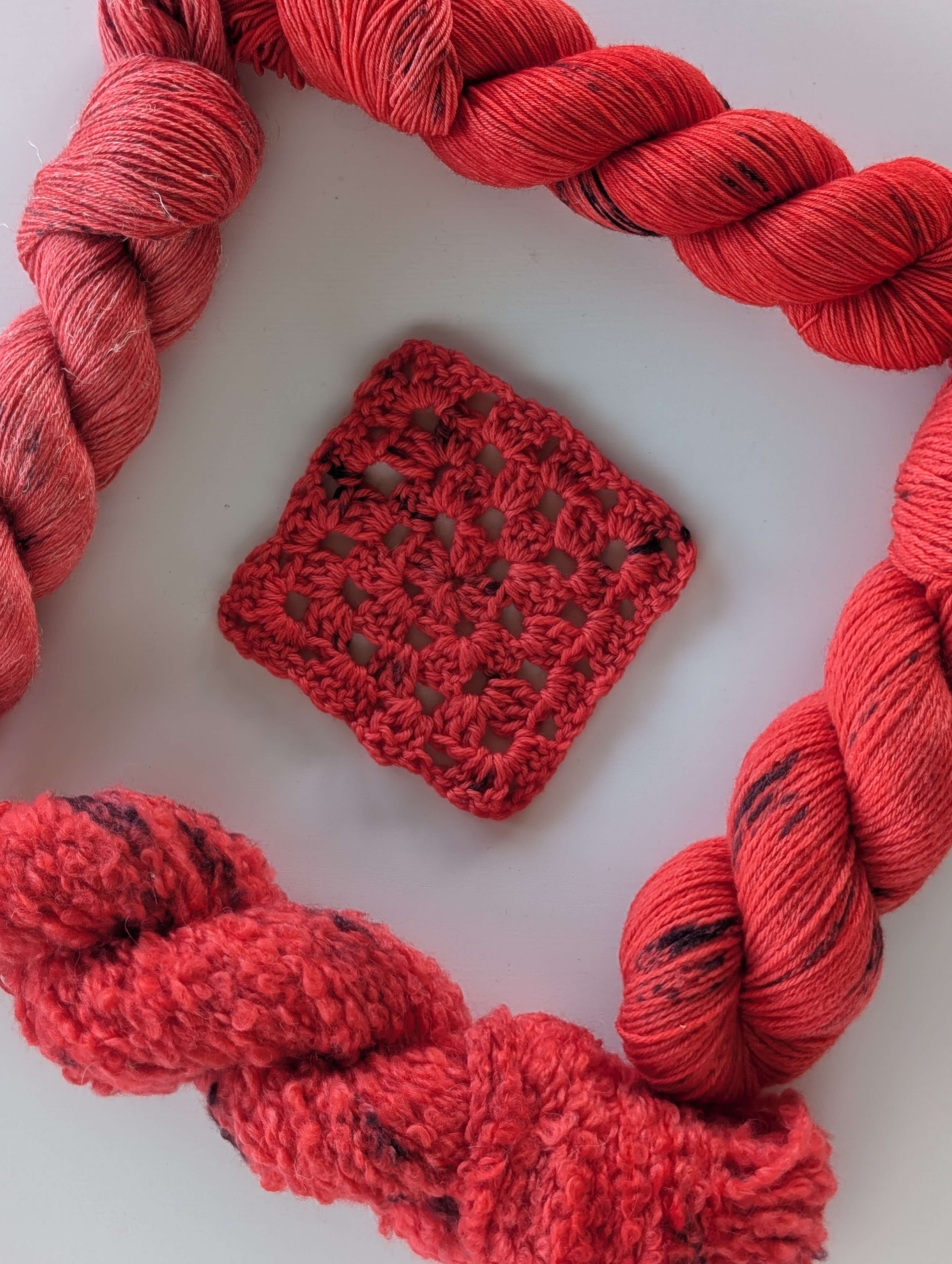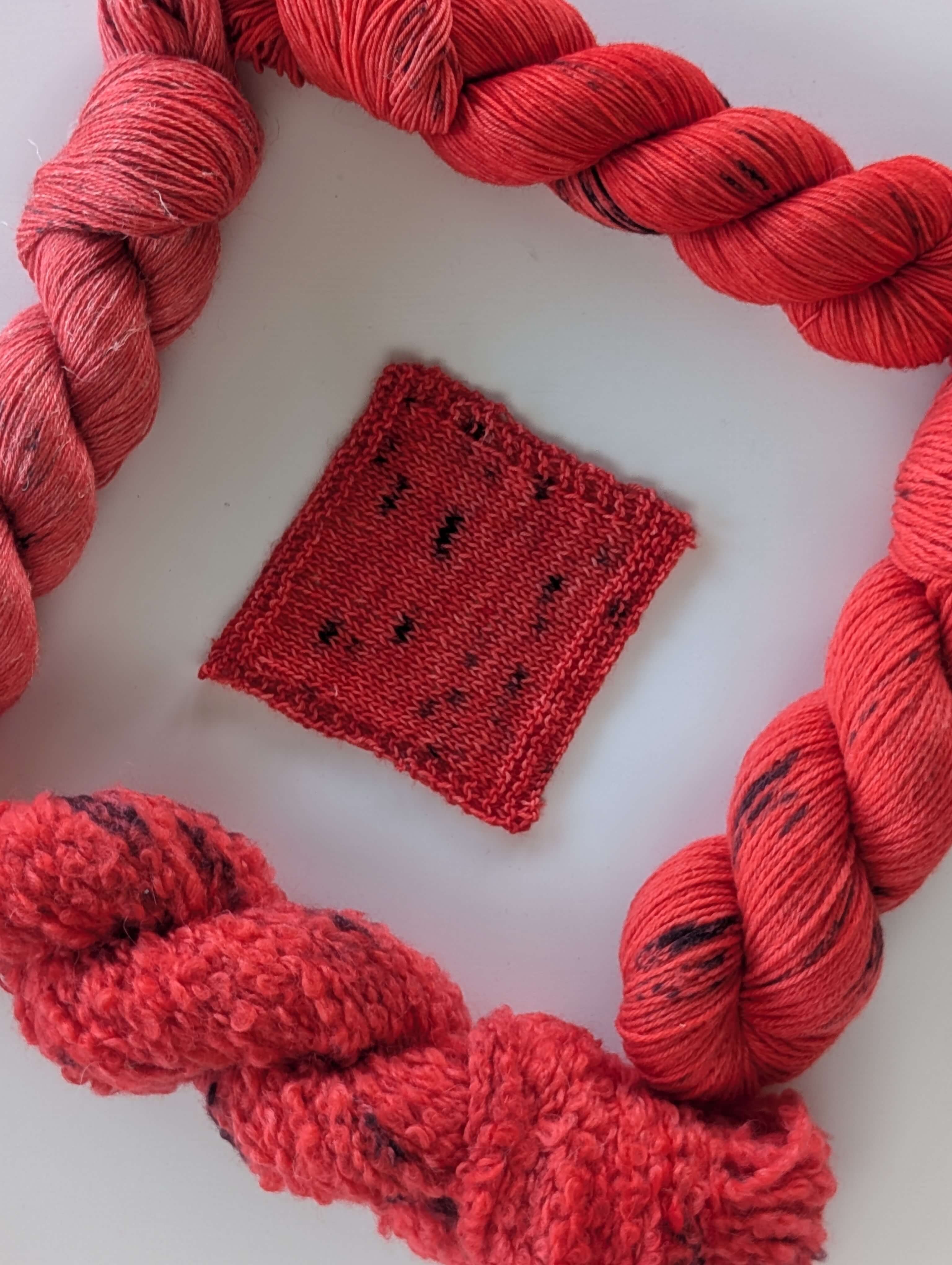 They are made with NSW Merino and we provided both crochet and the knitted swatches.