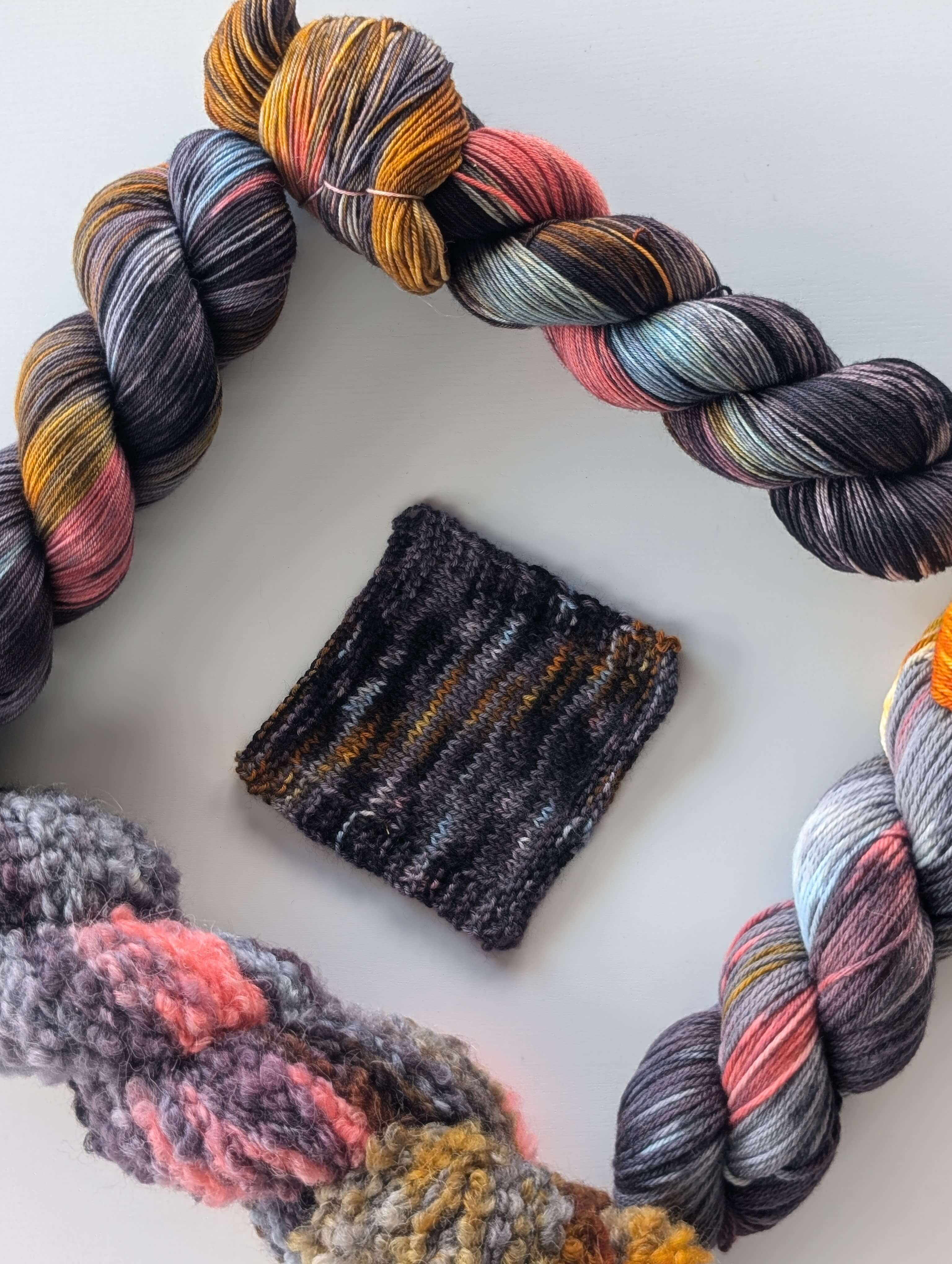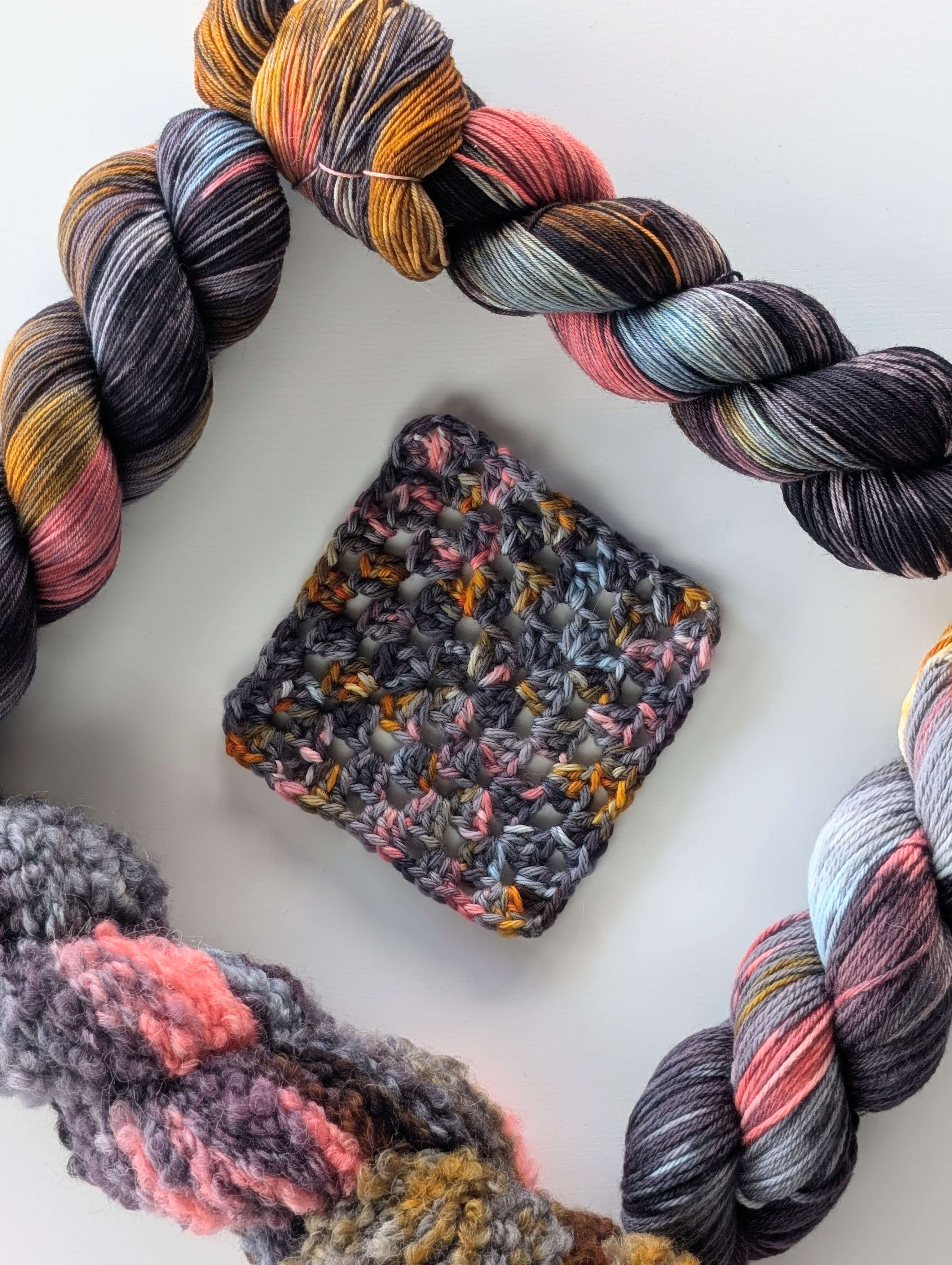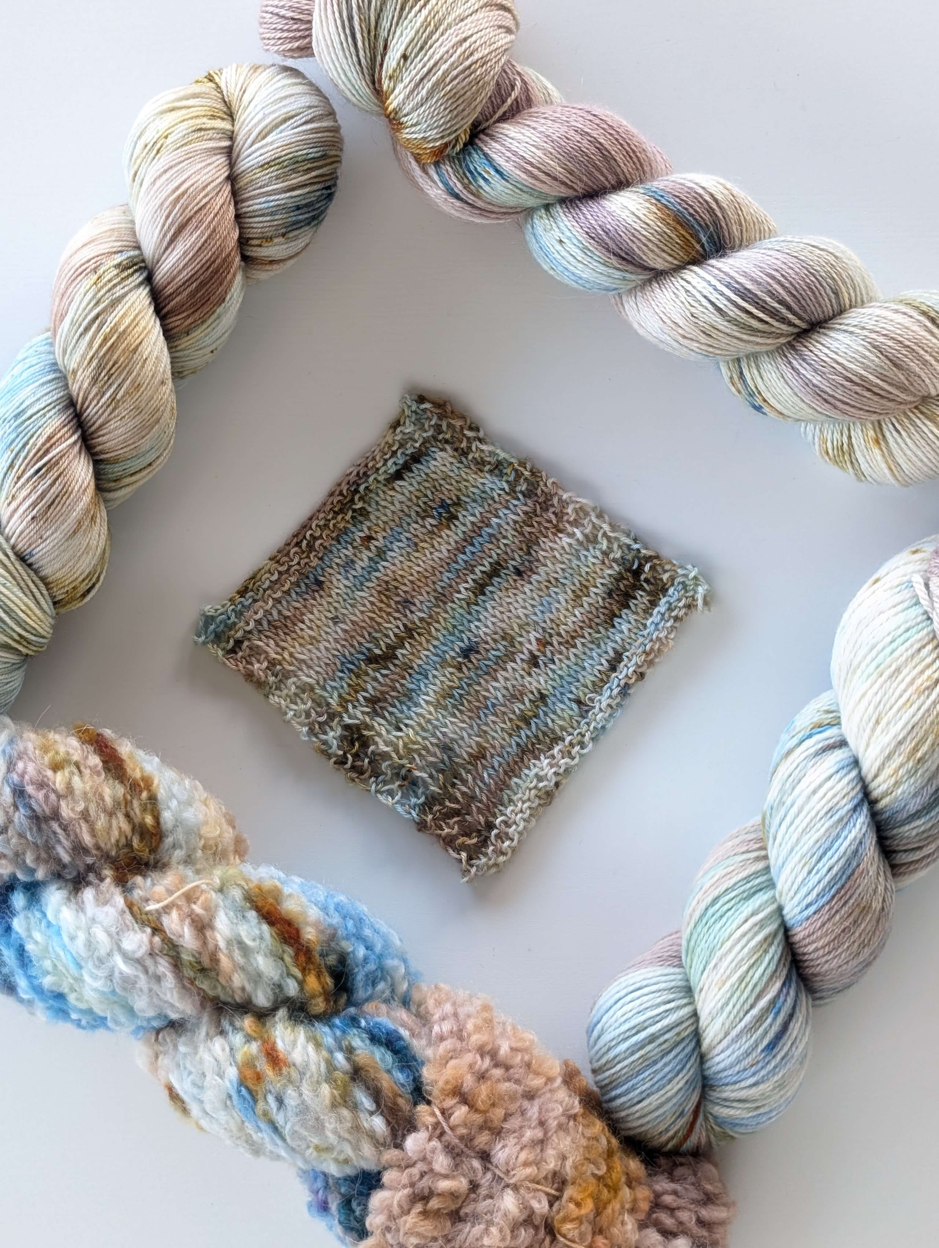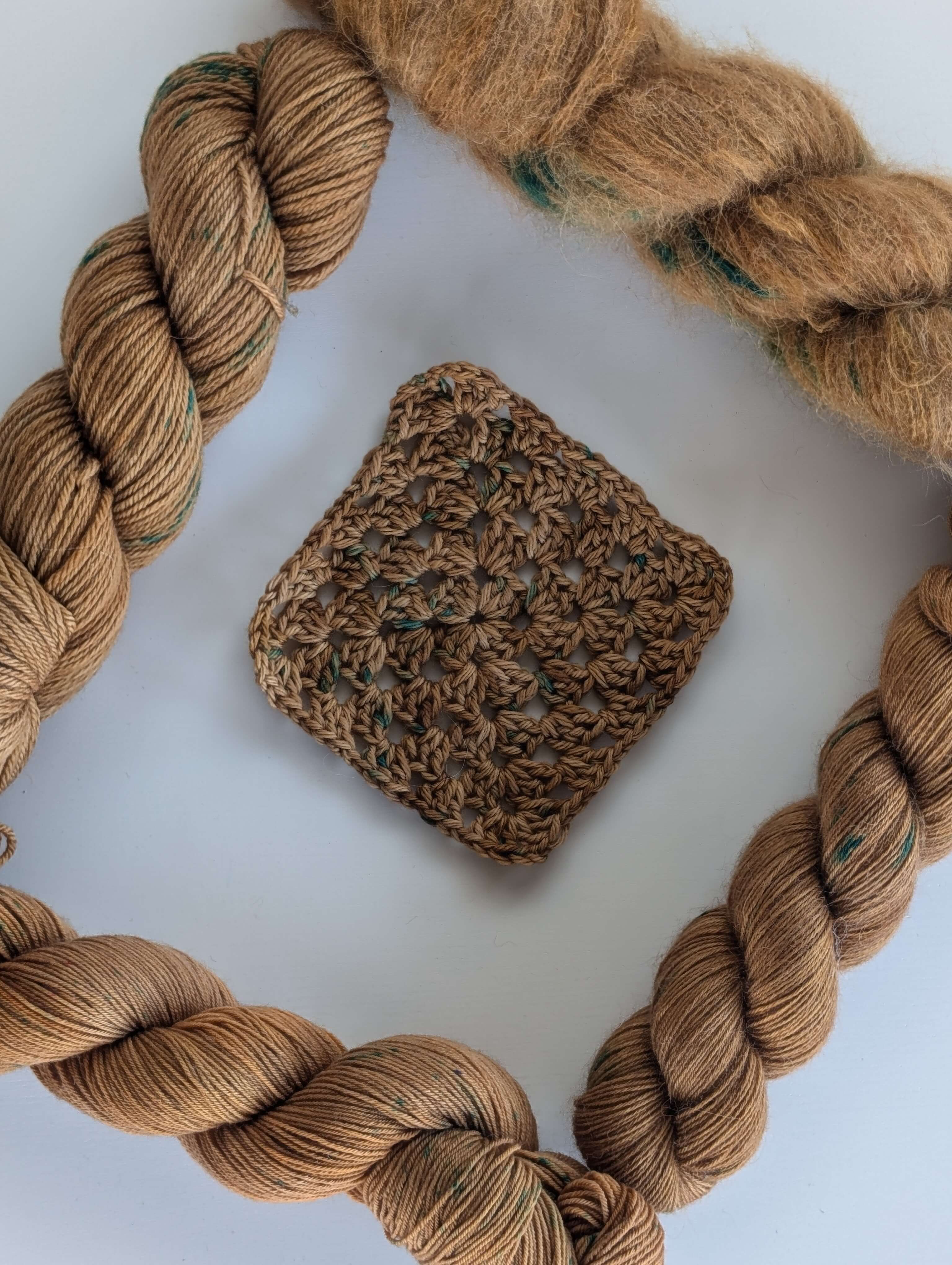 They are made with NSW Merino and we provided both crochet and the knitted swatches.
